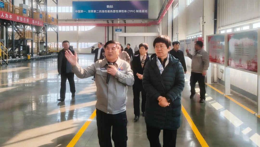 在道恩新材料展示中心,王隨蓮副主任聽取了產業鏈、產品鏈和企業鏈打造情況,仔細了解產業布局、科技研發、產品性能及應用領域等情況。“今天是第三次來道恩,每次來都有變化、都有驚喜!”她對道恩高質量發展所取得的成果給予高度評價。作為國家認定高新技術企業,道恩股份核心產品榮獲全國制造業單項冠軍,高性能熱塑性彈性體(TPV)產能位居全球第二,為我國橡膠工業發展作出了重要貢獻。王隨蓮副主任走進TPV生產車間,察看高端化、智能化、綠色化生產情況,點贊道恩“引領行業潮流、打造民族品牌”的家國情懷。