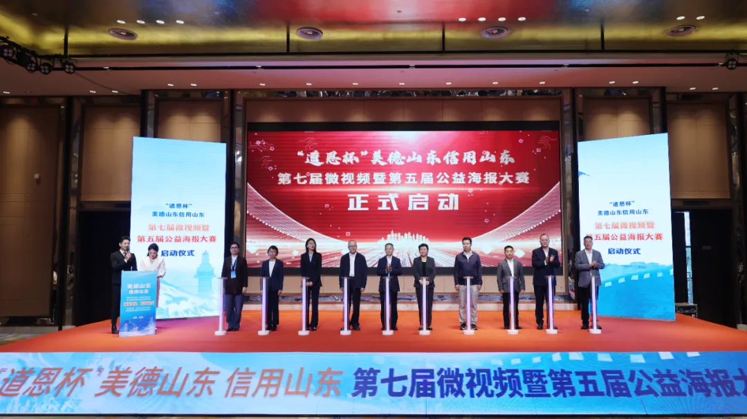 山東省委宣傳部、省發(fā)展改革委、中國人民銀行山東分行有關(guān)領(lǐng)導(dǎo),龍口市委副書記、市長盧一男,道恩集團(tuán)副總裁宋慧東出席活動并致辭。與會領(lǐng)導(dǎo)為獲獎單位和個人頒獎,共同啟動“道恩杯”美德山東信用山東第七屆短視頻暨第五屆公益海報大賽。